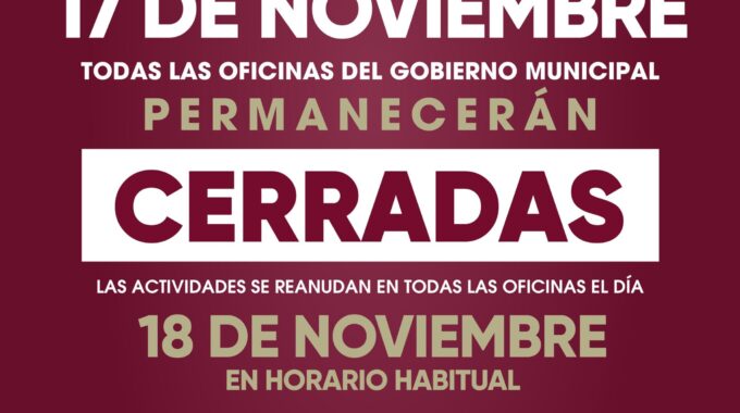 Será día inhábil en el Gobierno Municipal de Tijuana el próximo lunes 17 de noviembre