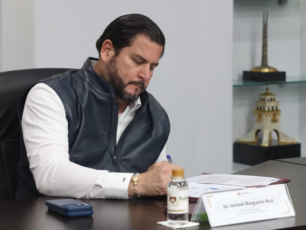 Tijuana, Baja California, 24 de septiembre de 2025. El presidente municipal, Ismael Burgueño Ruiz, y el director General de Distribuciones Rembao, Arturo Moreno Rembao, formalizaron la firma del contrato de donación para apoyar a asociaciones civiles y a la población más vulnerable de la ciudad, a través del Sistema para el Desarrollo Integral de la Familia (DIF Tijuana).