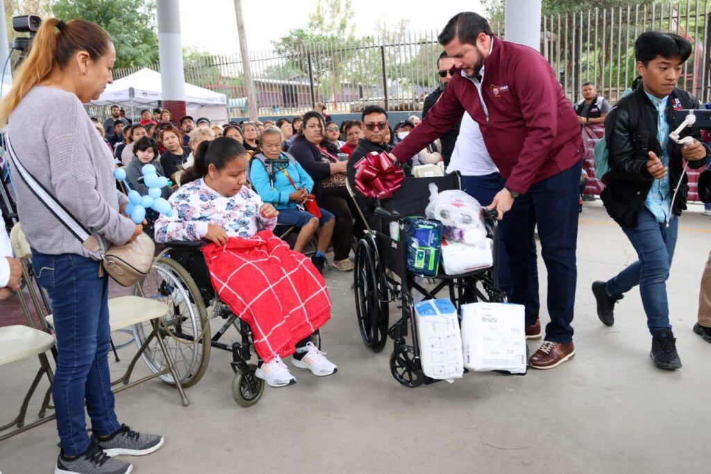 En el marco de la jornada, el primer edil, hizo entrega de una silla de ruedas y un kit de limpieza a la ciudadana Nahomi Alejandra, como parte del compromiso del Gobierno Municipal de atender, de manera directa, las necesidades más sensibles de la comunidad, beneficiando a cerca de 500 personas con los servicios gratuitos.