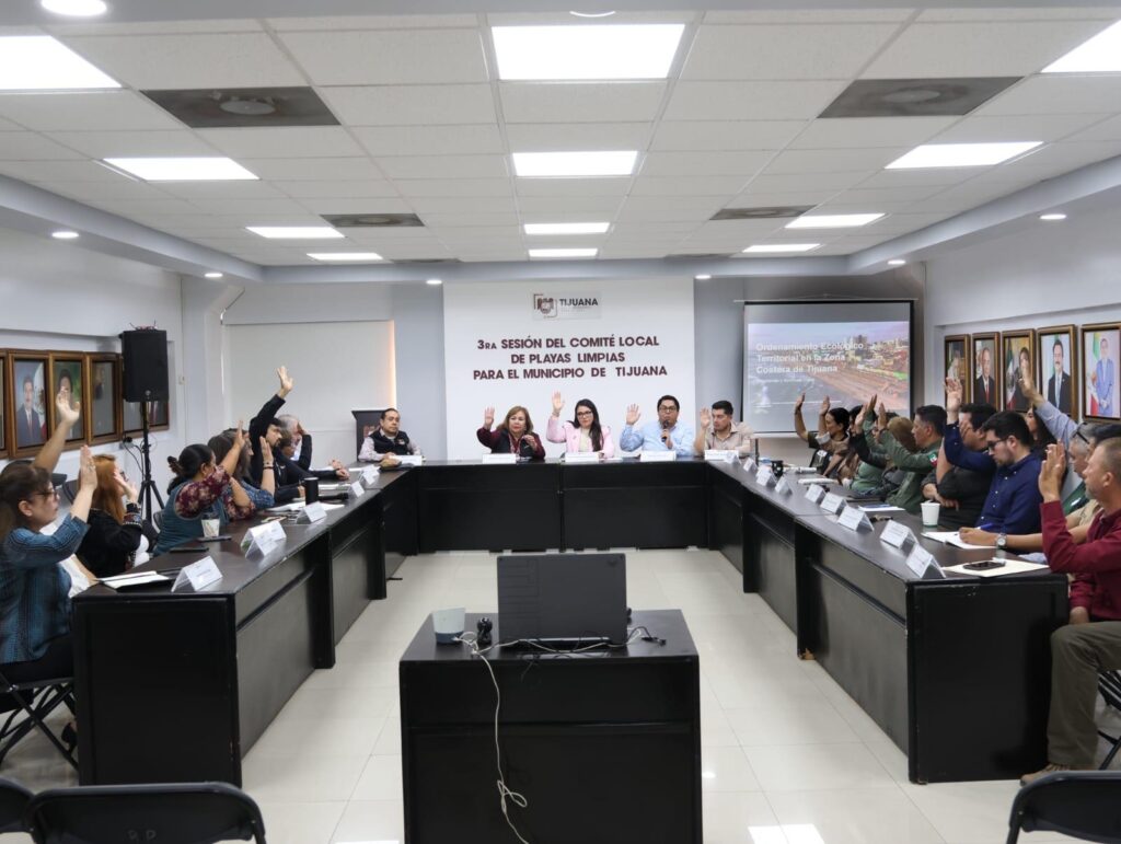 Tijuana, Baja California, a 7 de noviembre de 2025. El XXV Ayuntamiento de Tijuana, a través de la Secretaría de Protección al Ambiente, llevó a cabo la tercera Sesión del Comité de Playas Limpias, con el objetivo de presentar los avances de las comisiones de trabajo, intercambiar experiencias y generar soluciones conjuntas para la conservación de las costas de la localidad, tal como lo ha instruido el presidente municipal, Ismael Burgueño Ruiz.